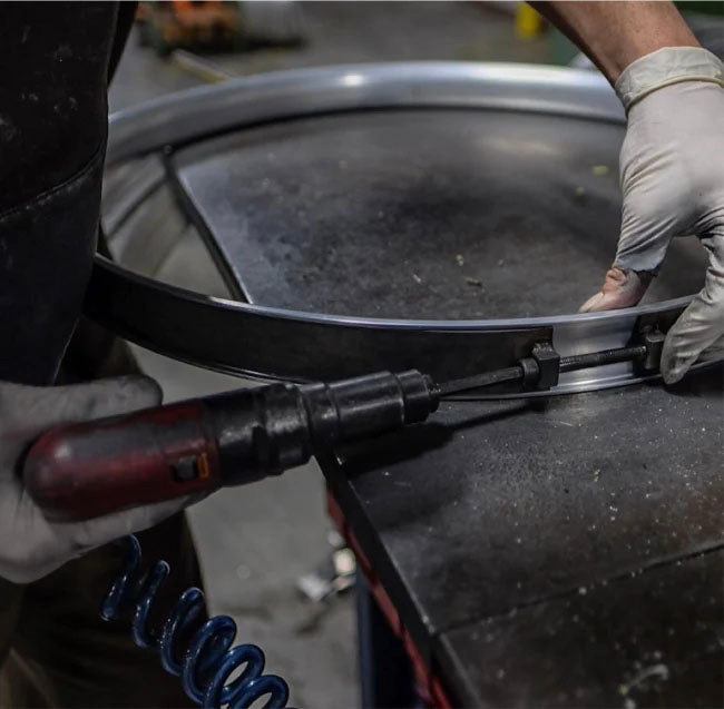 We use a unique sleeve joining process to create our rims. We use a joiner extrusion that fits perfectly inside the internal cavity of the rim. It is chemically welded in place once the rim is aligned, perfectly round, and flat.